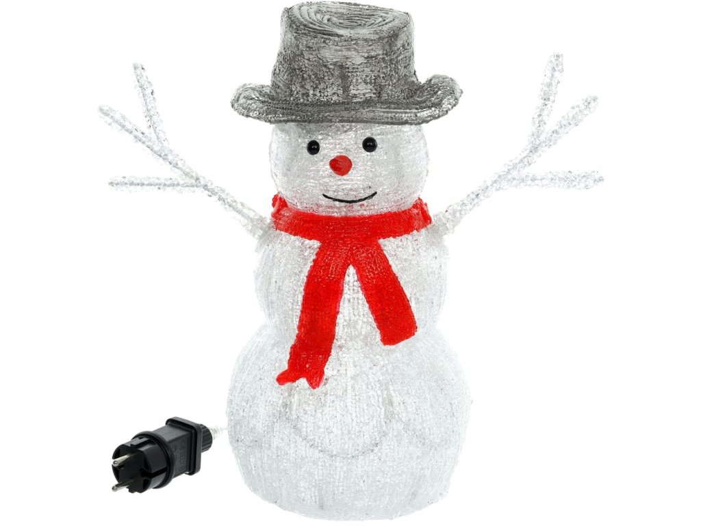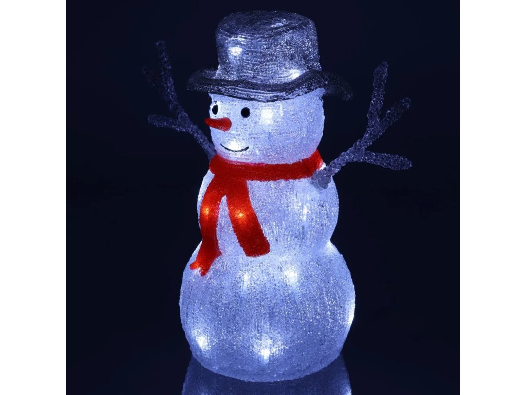 vánoční dekorace • akryl • studené bílé světlo • 30x LED • design sněhuláka • výška 33 cm