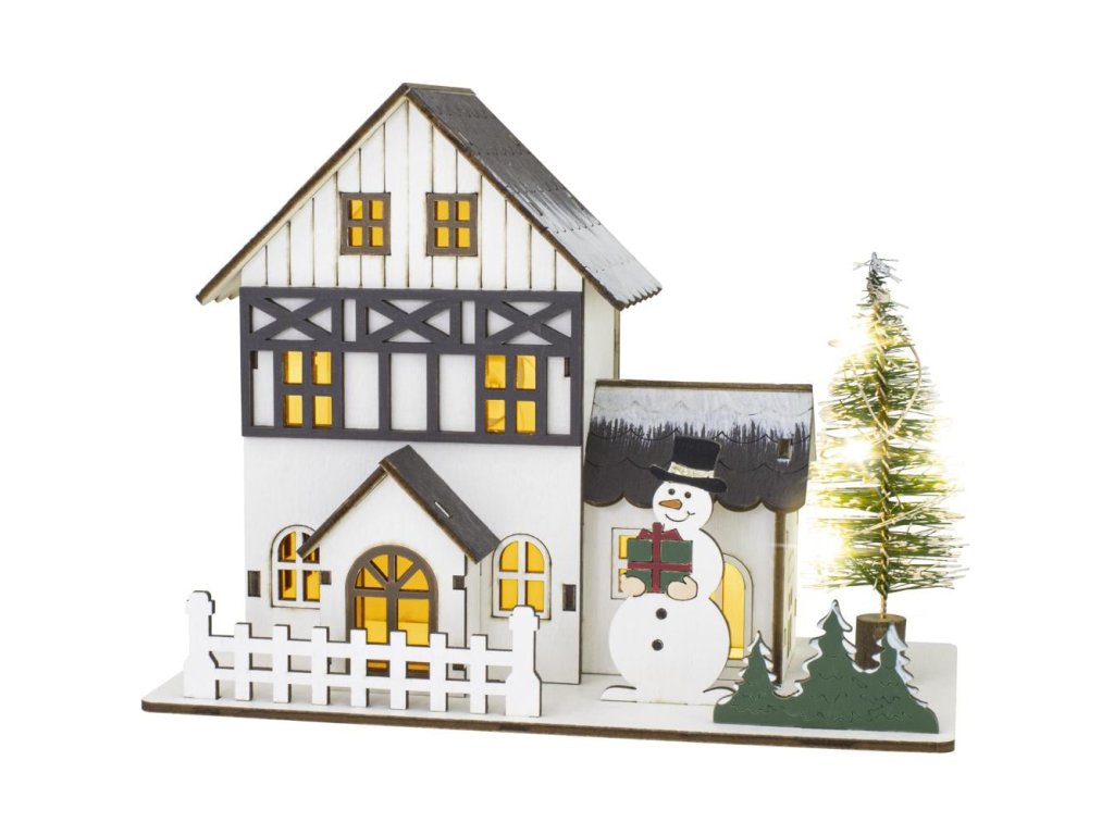 Celkový efekt doplňuje sněhulák a osvětlený stromek