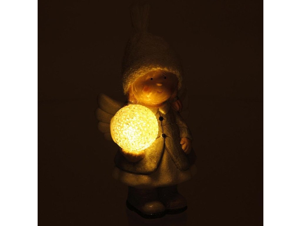 Vyčarujte si doma tu správnou vánoční atmosféru pomocí této originální dekorace. Roztomilý andílek držící svítící kouli se bude perfektně vyjímat na každém stolku, poličce či okně. Tato dekorace je vybavena LED technologií, díky které koule vyzařuje teplé bílé světlo. Ochranné krytí IP20 zaručuje bezpečné použití v interiéru. Andílek dosahuje velikosti 21 centimetrů a jeho provoz je řešen bateriově.