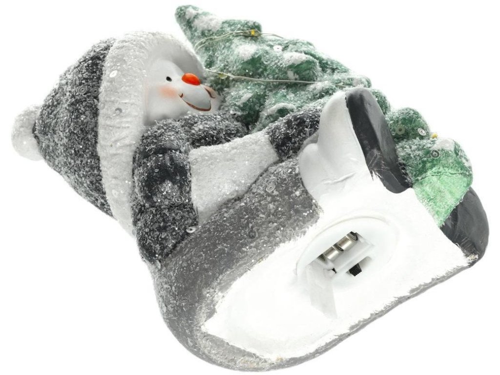 Roztomilý sněhulák s vánočním stromečkem vám pomůže vytvořit si doma jedinečnou vánoční atmosféru. Tato originální dekorace se světelným efektem se perfektně hodí do jakéhokoliv interiéru. Je opatřena ochranným krytím IP20, které zaručuje bezpečné použití uvnitř. Napájení je řešeno bateriemi.