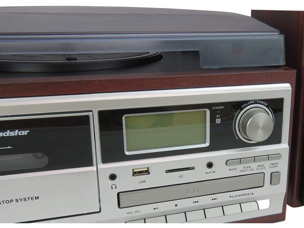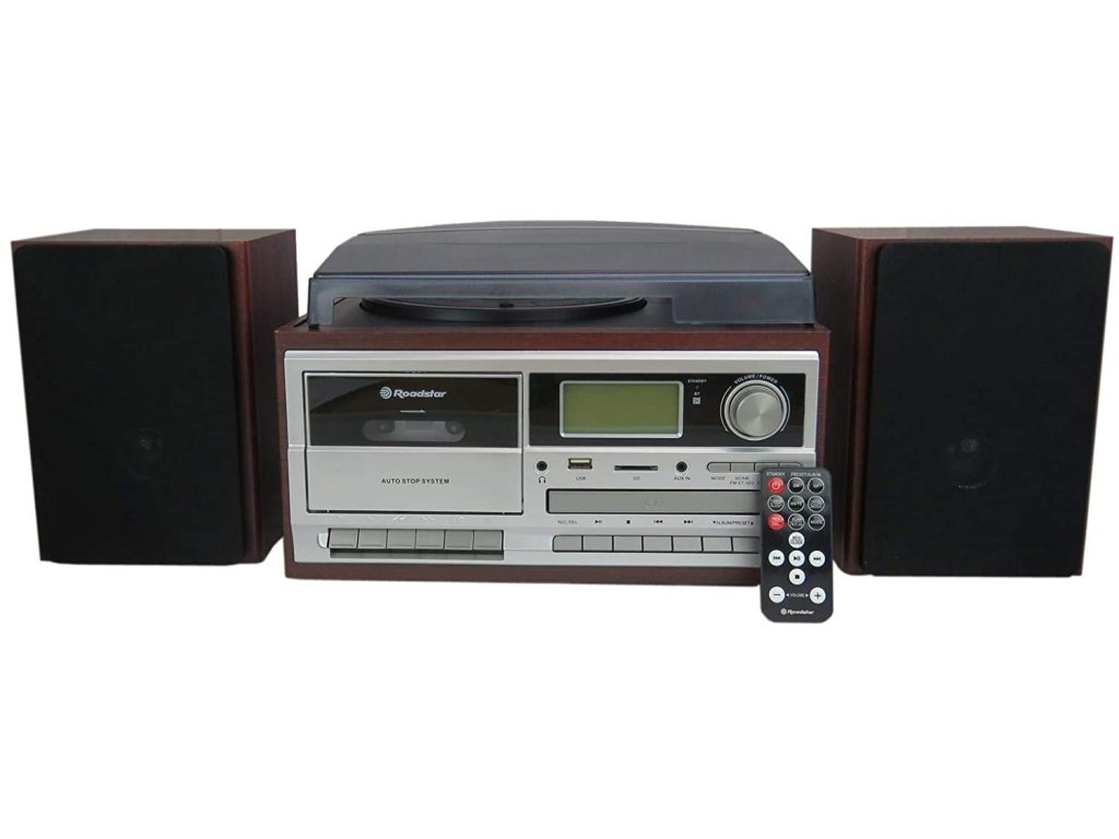 Roadstar HIF-8892 EBT, mikrosystém s gramofonem, CD přehrávač, digitální FM tuner s RDS, zesilovač 2x4W RMS, gramofon 33/45/78 ot., přehrávání a záznam na USB, dálkové ovládání