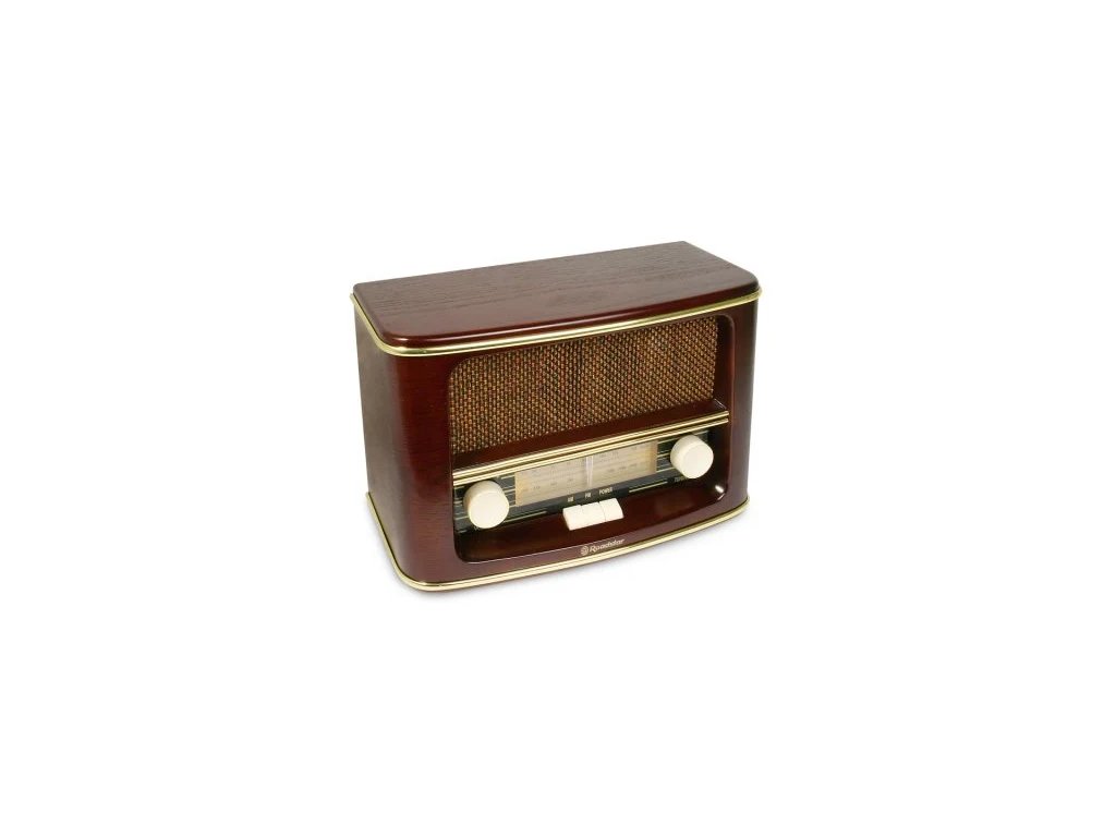 retro rádio, tuner AM/FM, vestavěný širokopásmový reproduktor, podsvícená stupnice stanic, rozměry 303x208x140 mm, napájení AC 230V nebo 6x C (R14) baterie