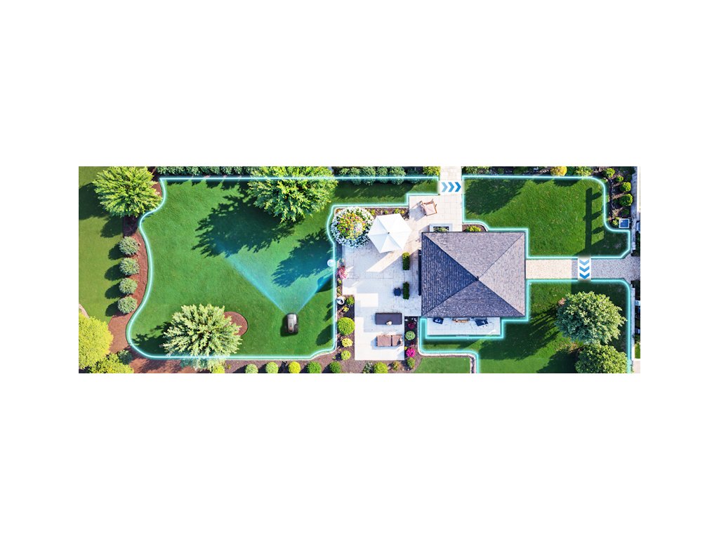 Automatické mapován: Díky přesnému určování polohy a měření vzdálenosti E15 efektivně mapuje váš dvůr a plánuje dráhu sekání, kterou si můžete snadno prohlédnout na svém chytrém telefonu.
