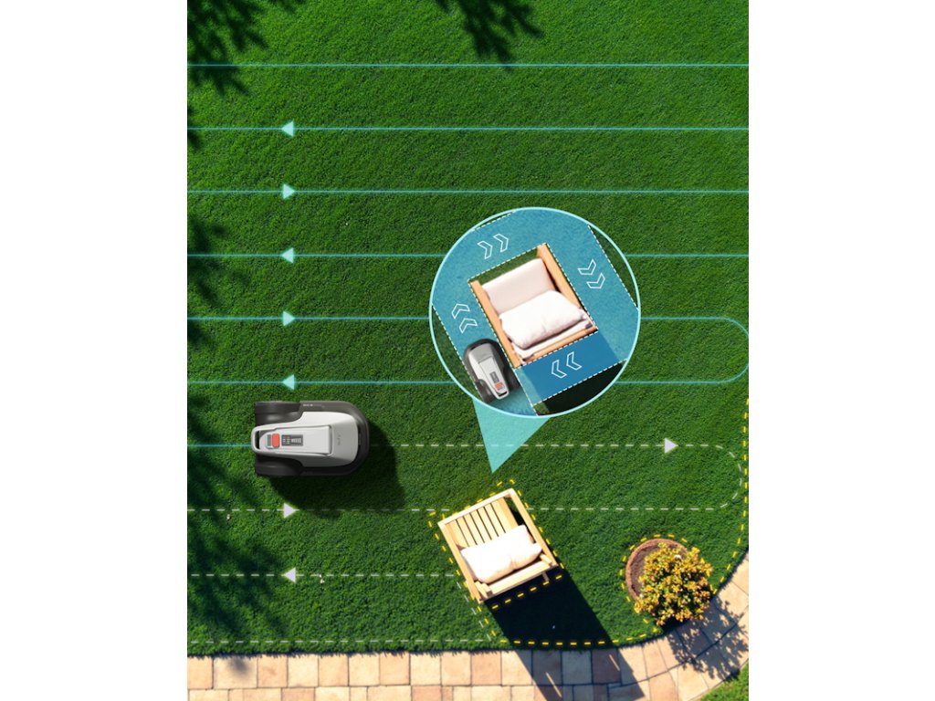 Přesné vyhýbání se překážkám: Systém 3D vnímání sekačky E15 přesně detekuje překážky a zajišťuje, že se vyhne kolizi ve složitém prostředí zahrady.