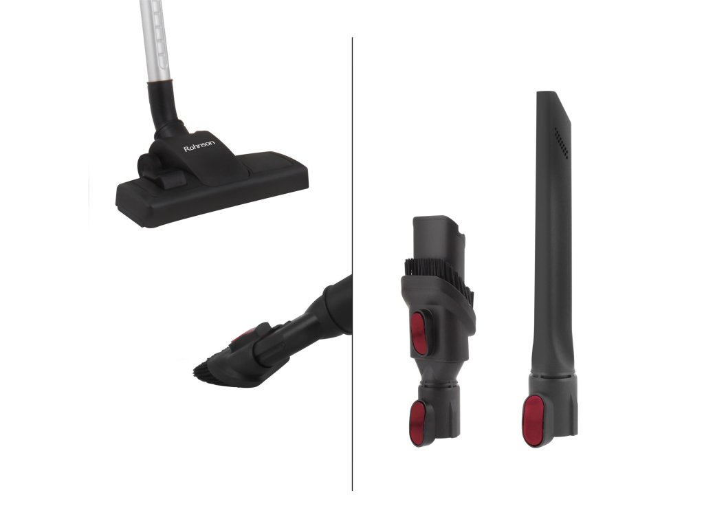 Příslušenství: štěrbinová hubice, kartáč 2 v 1, držák pro připevnění na stěnu