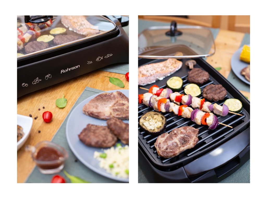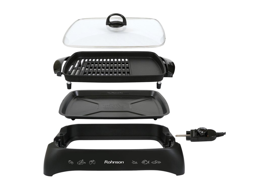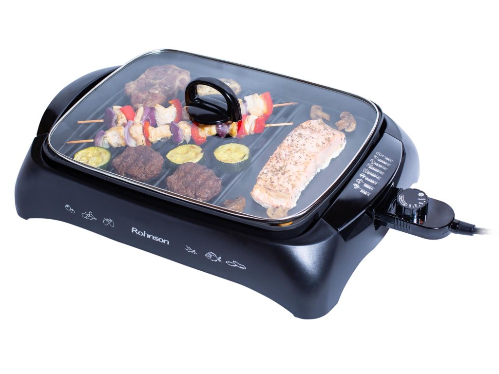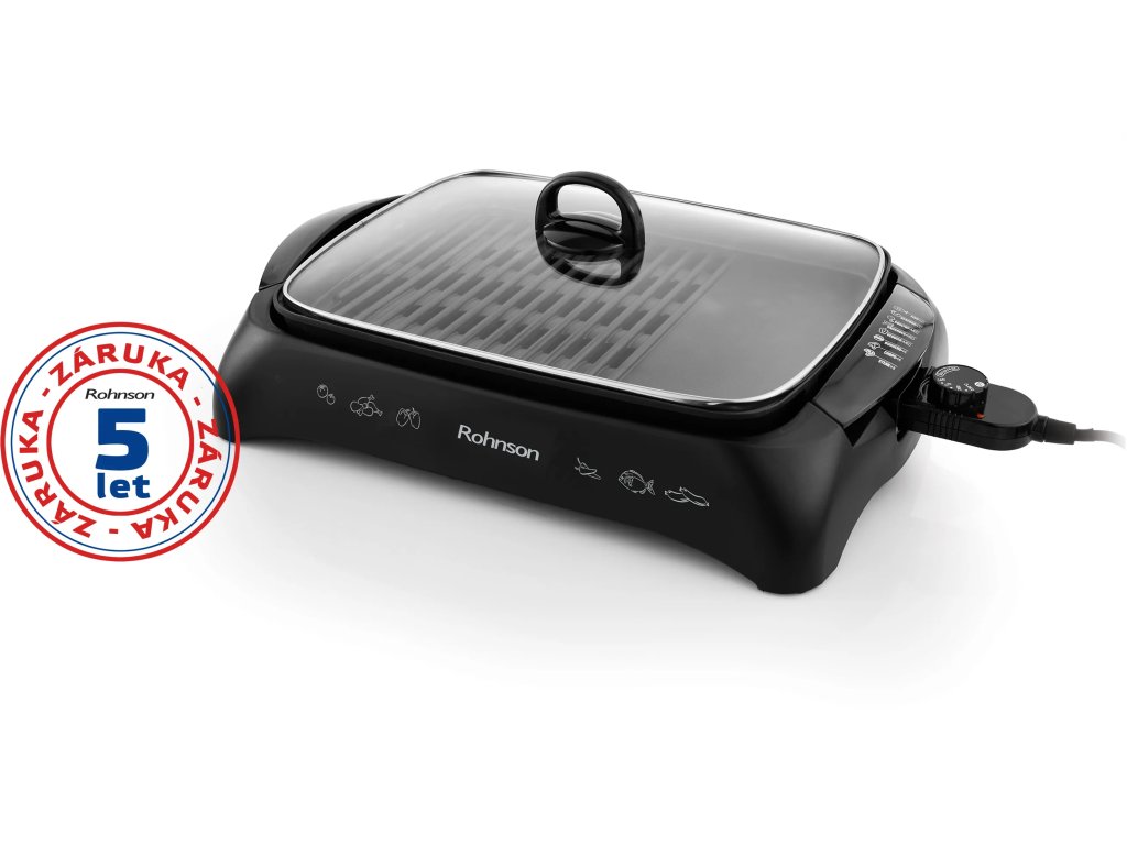 Gril ROHNSON R-250 patří mezi nejoblíbenější výrobky této značky. Na tento gril máte pětiletou záruku. Díky příkonu 2200 W a termostatu vámi požadované teploty dosáhne během 1-2 minut. Povrch grilovací plochy je nepřilnavý, tudíž nebude potřeba žádný olej