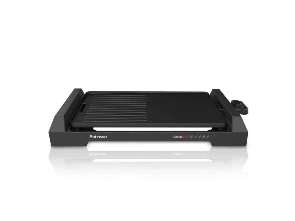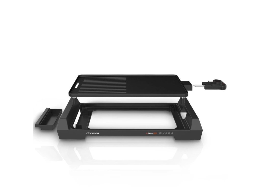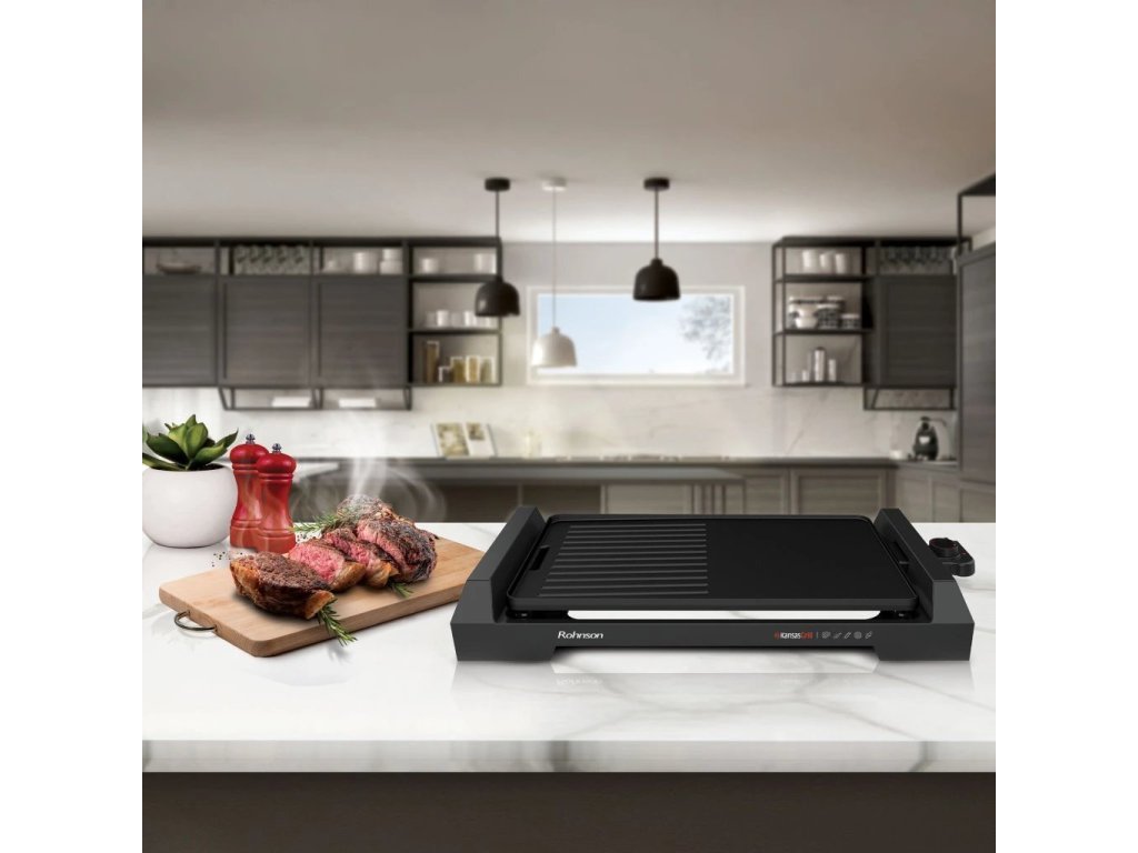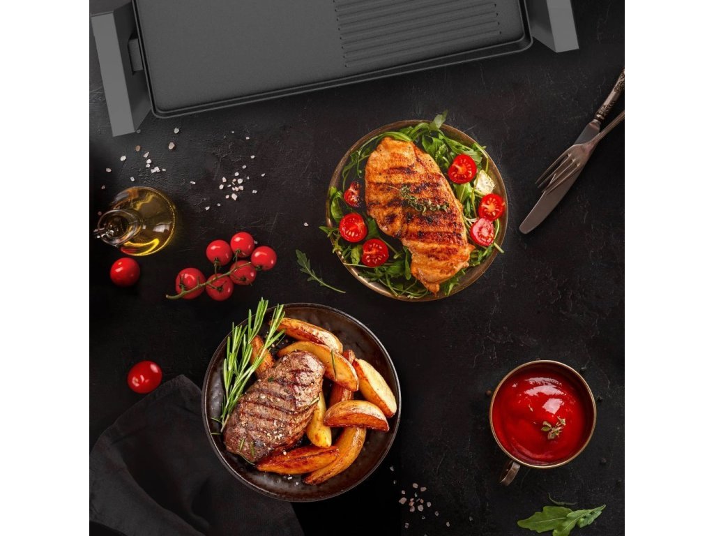 Výkonný stolní gril s příkonem 2000 W, velká grilovací plocha 25 x 45 cm bez PFAs, odnímatelná grilovací deska a termostat, nepřilnavý povrch pro zdravější grilování a odkapávací tác.