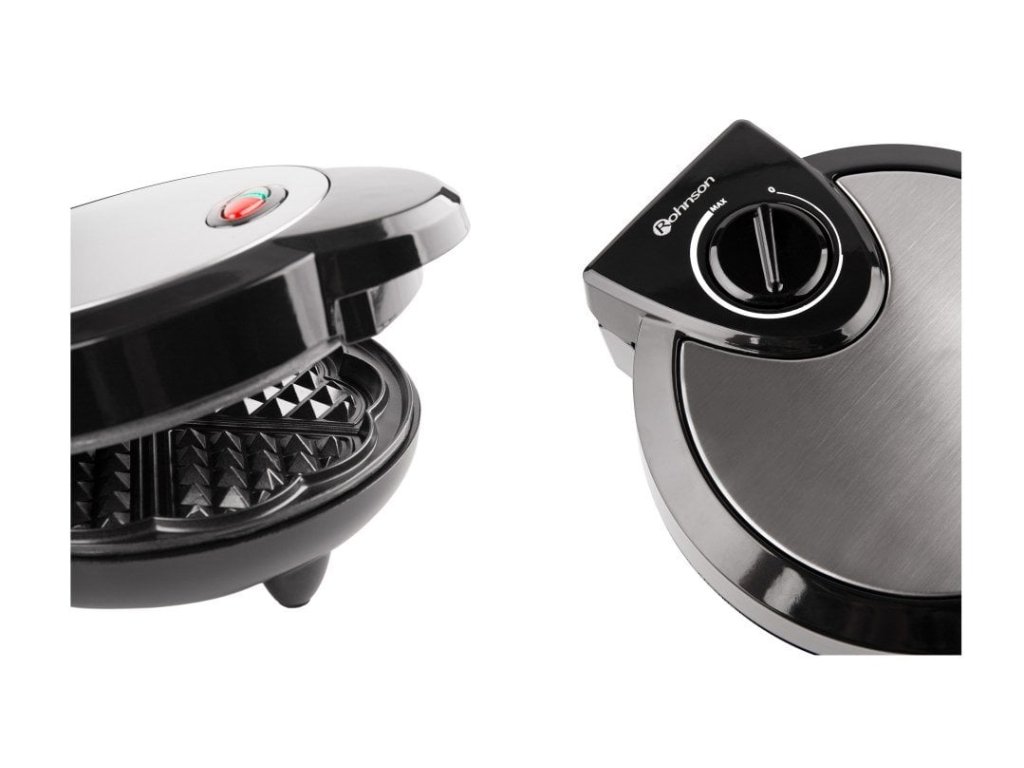 ROHNSON R-268 Vaflovač, Připraví vafle ve tvaru srdce, Nastavitelná teplota, Tepelně izolovaná rukojeť a plášť