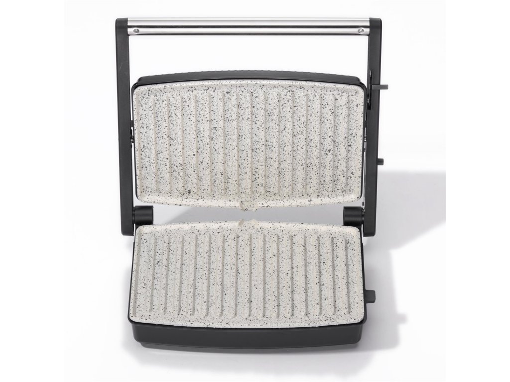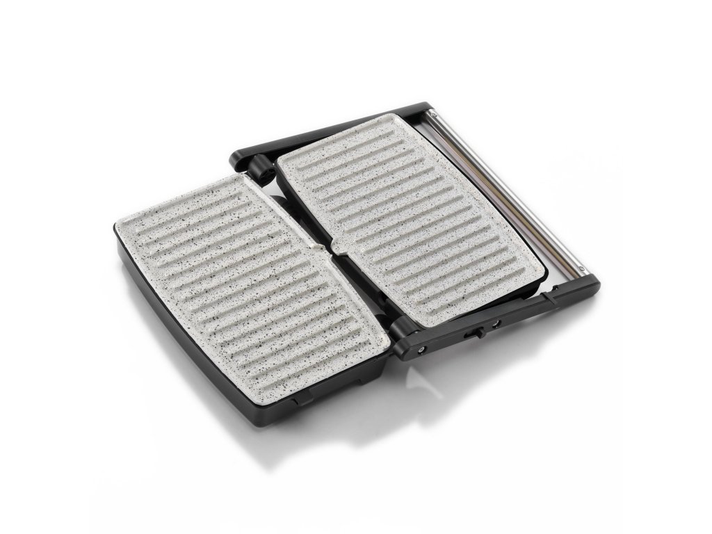 S výkonem 1500 W zajišťuje rychlé a rovnoměrné pečení, zatímco velké pečicí pláty s nepřilnavým povrchem s mramorovou úpravou bez PFAS umožňují snadné čištění a zdravou přípravu pokrmů.