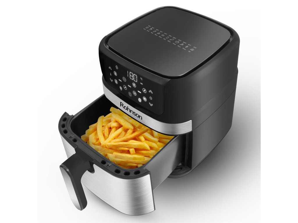 Horkovzdušná fritéza, příkon 1500, objem 4,5 l, 10 přednastavitelných automatických programů, ochrana proti přehřátí, lze mýt v myčce nádobí, 60minutový časovač s automatickým vypnutím.