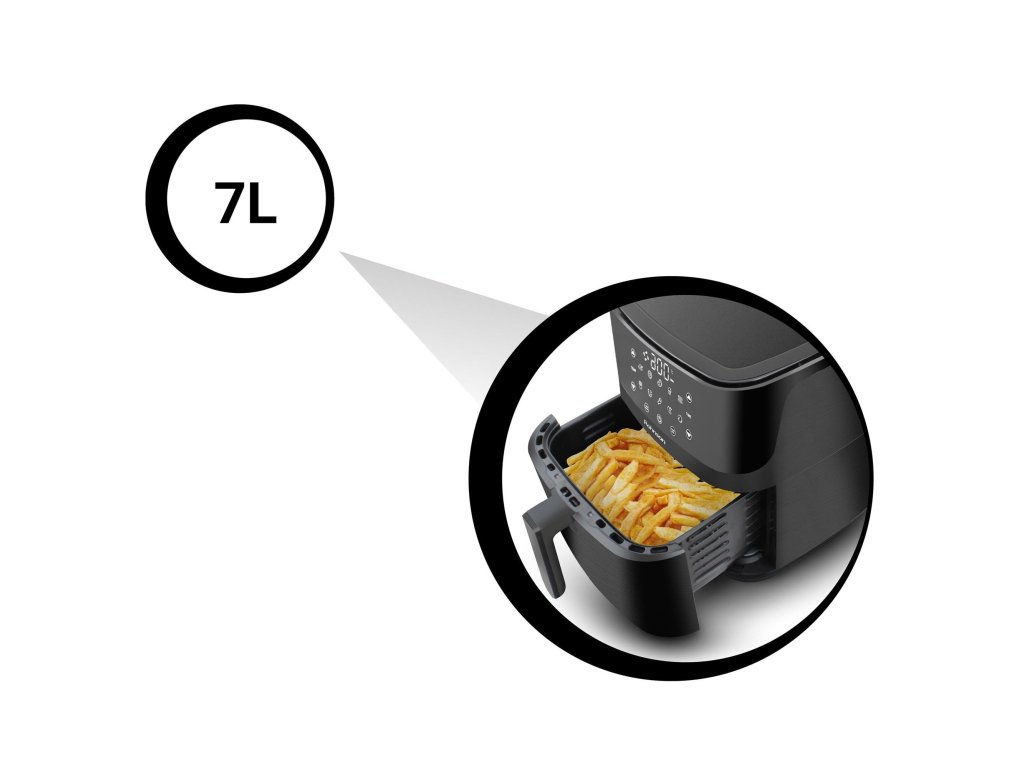 Horkovzdušná fritéza 1800W, nastavení teploty 80-200 °C, nádoba o objemu 7 l