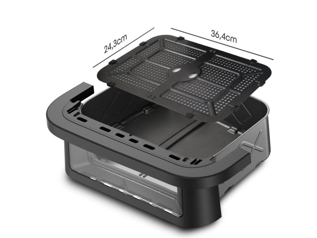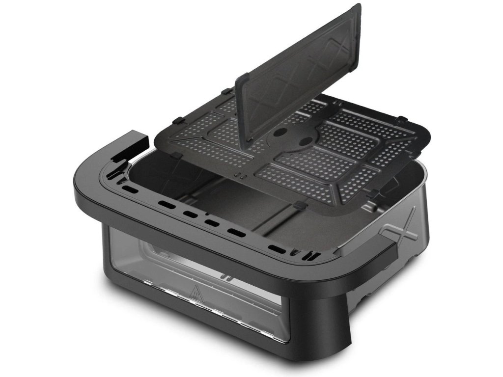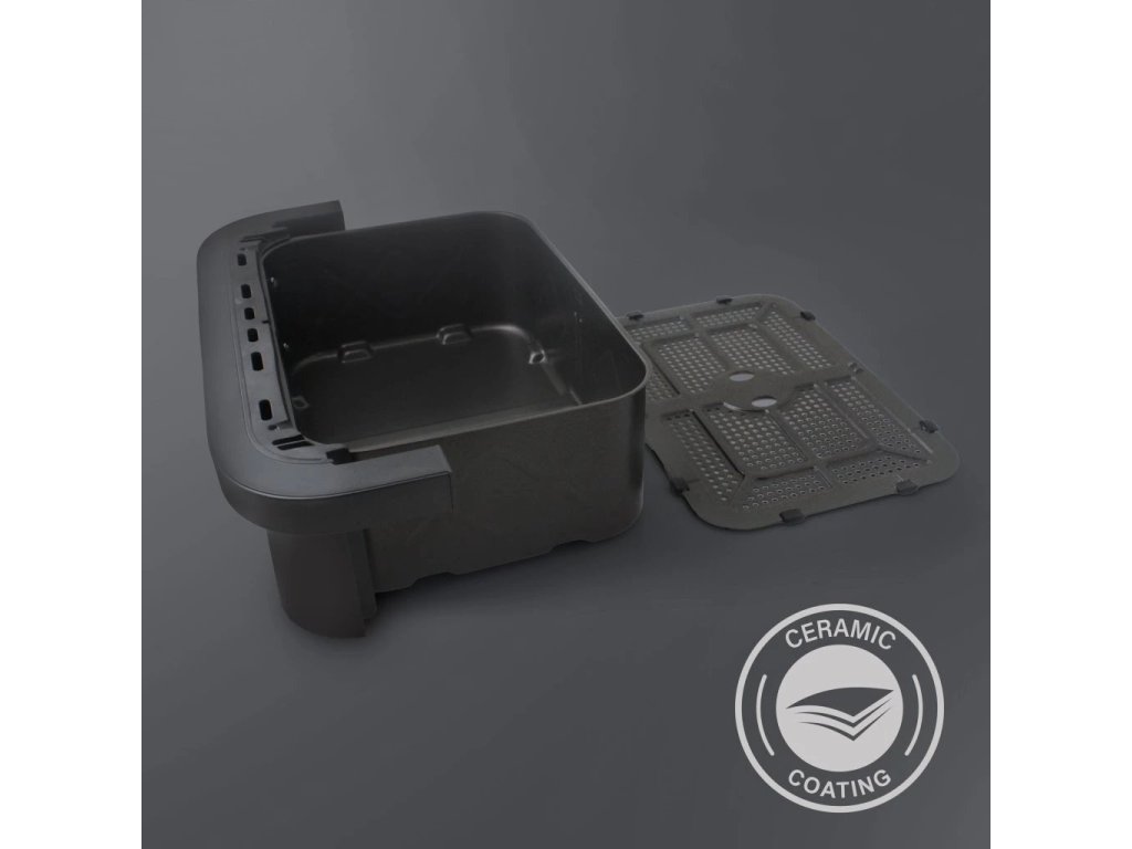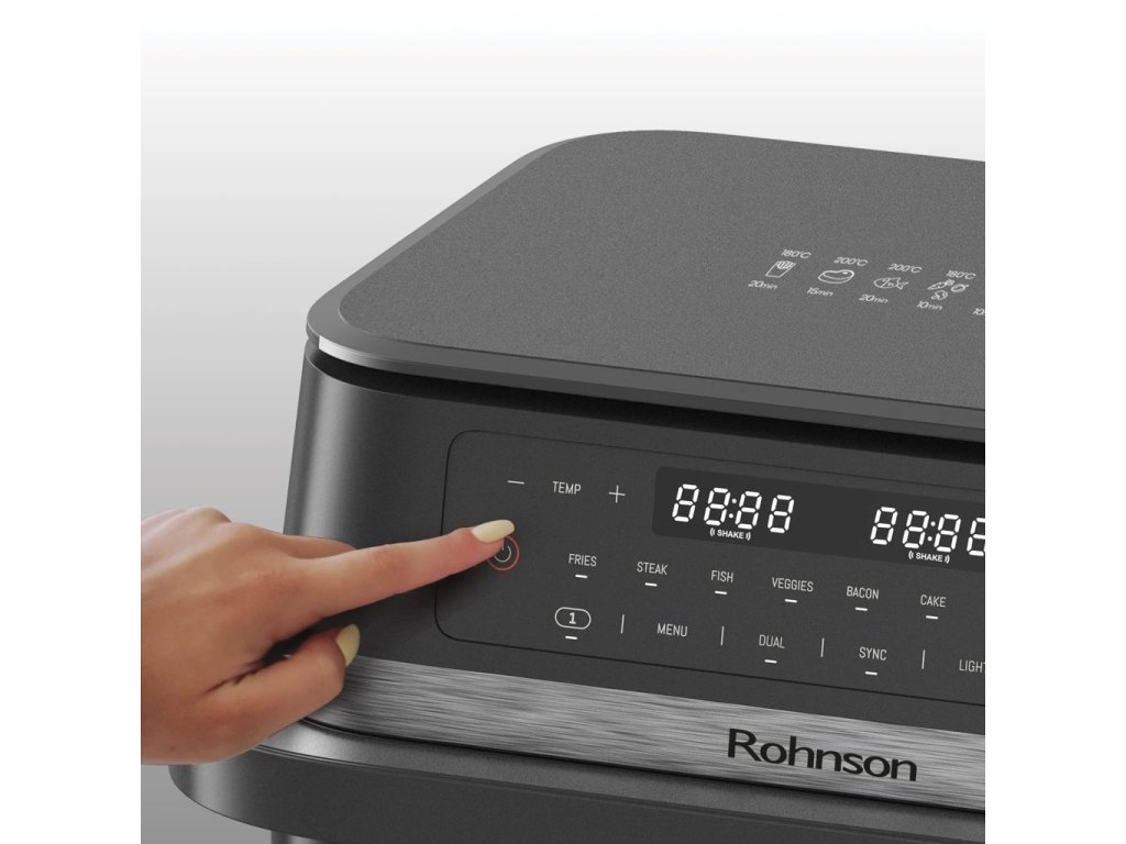 Horkovzdušná fritéza s dvouzónovým košem, barva černá a stříbrná, příkon 2950W, nastavení teploty 80-200 °C, objedm nádoby 2x 5,75l/11,5 l, počet přednastavených programů 8, barevný LED dotykový panel, Technologie Cook assist.