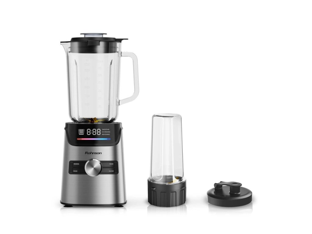 Stolní mixér, příkon 1400W, 6 rychlostí, 6 nožů, mixovací nádoba o objemu 1,7 l, barevný ovládací panel, mixovací láhev o objemu 600 ml bez BPA se 4 noži s titanovou úpravou.