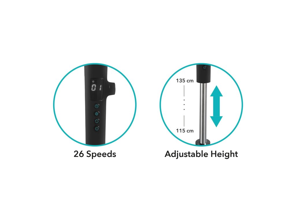 Stojanový ventilátor s dálkovým ovládáním o 40 cm, 26 volitelných rychlostí