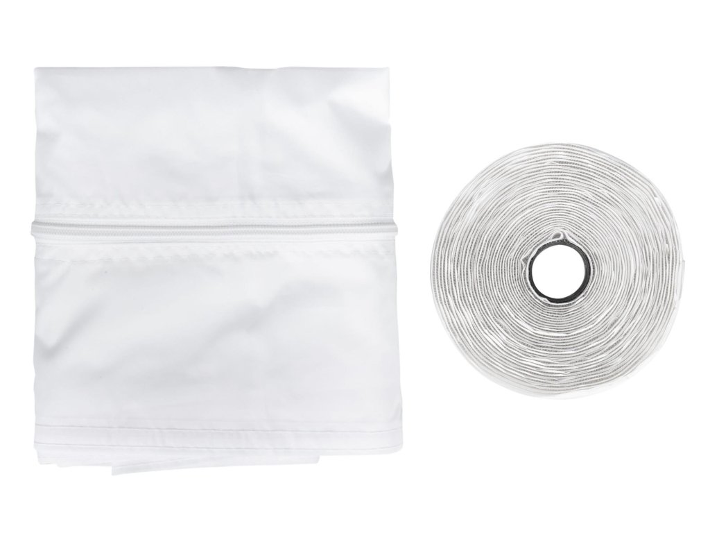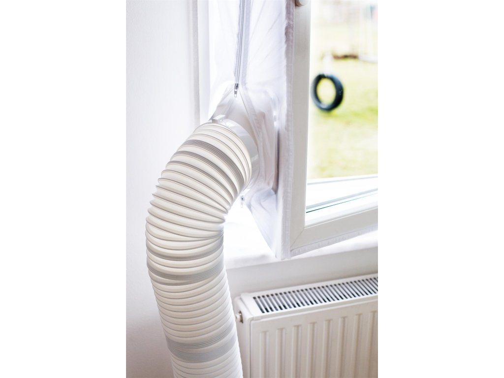 Okenní sada pro mobilní klimatizace, omezuje pronikání teplého vzduchu a nežádoucího hmyzu, jednoduchá a rychlá instalace, pro všechny druhy přenosných klimatizací, lze prát v pračce do 30 °C.