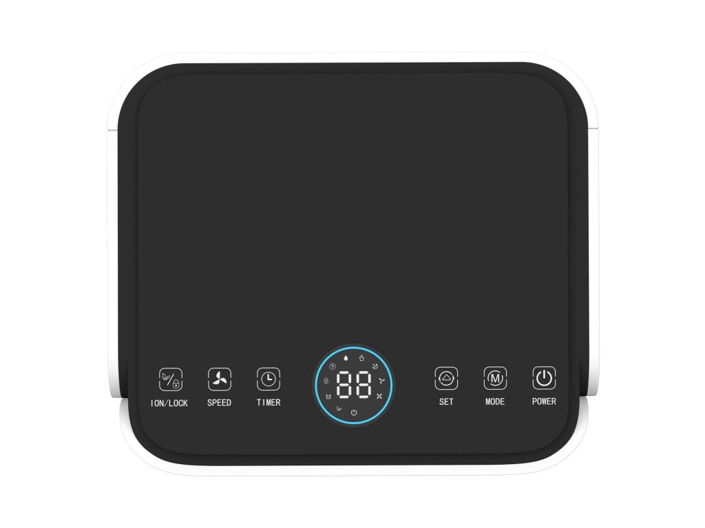Odvlhčovač vzduchu pro prostory do 45 m2, nezávislá funkce ionizace pomáhá eliminovat alergeny a jiné škodlivé částice z ovzduší, 2 l kapacita zásobníku na vodu.