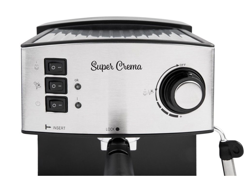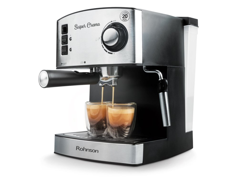 pákový kávovar • tlak čerpadla 20 barů • parní tryska • příprava 2 šálků najednou • dvojitý filtr • objem zásobníku na vodu 1,6 l • připravíte espresso, cappuccino, horkou vodu