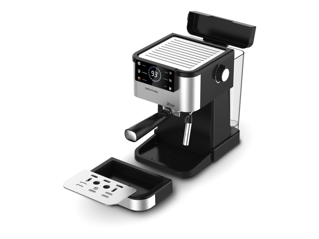 Espresso pro přípravu teplé i studené kávy, s příkonem 1350 W vysokotlaká extrakce 20 barů, odnímatelný průhledný zásobník na vodu o objemu 1,5l, filtr pro přípravu jednoho nebo dvou šálků kávy