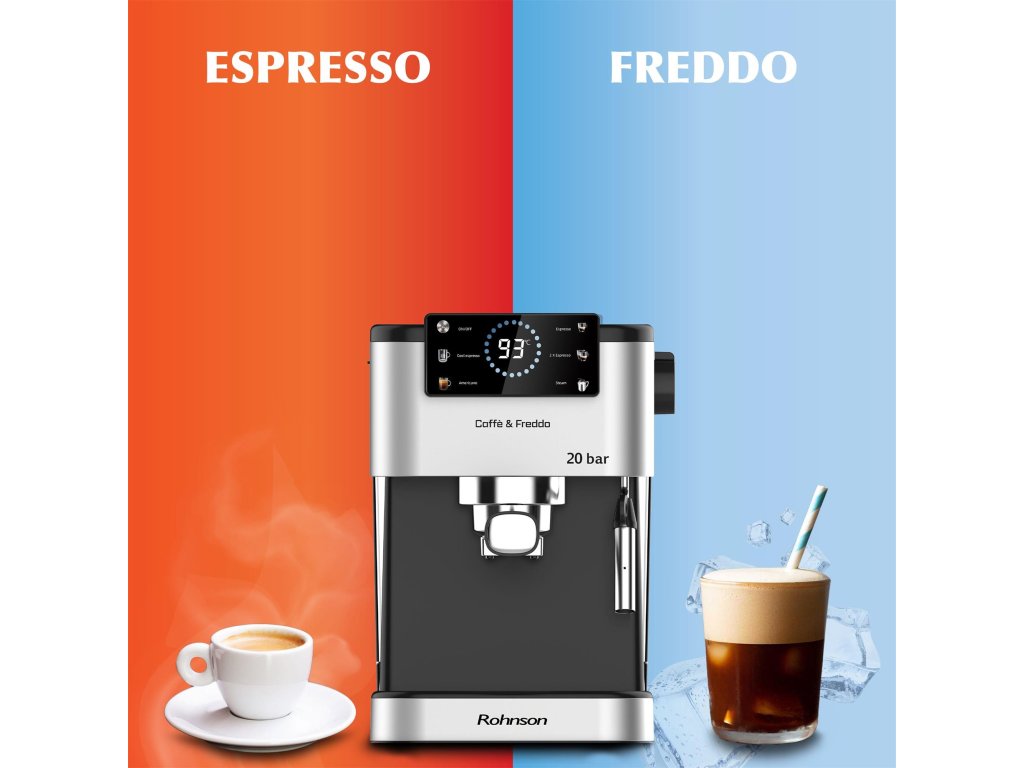 Espresso kávovar Hot & Cold R-98028 je inovativní přístroj pro milovníky kávy, který umožňuje přípravu nejen horkých, ale i studených kávových nápojů.