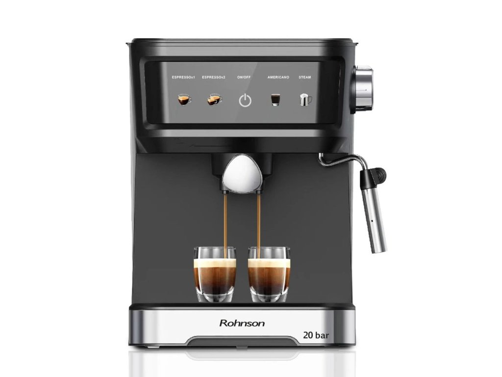 Espresso pákový kávovar pro přípravu kávy, příkon 850W, systém dvojitého řízení teploty NTC a PID, LED digitální dotykový ovládací panel, energeticky úsporný systém ERP, příprava 1 nebo 2 šálků kávy.