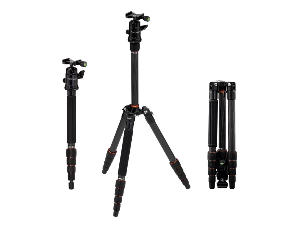 Díky propracované konstrukci je nový karbonový Compact Traveler opravdu skladný a ve složeném stavu měří pouhých 33 cm, avšak při rozložení nabízí maximální výšku až 142 cm. I při maximálním vysunutí je schopen stabilně a bezpečně unést i těžké DSLR fotoaparáty s hmotností až 8 kg. Celková hmotnost karbonového stativu, včetně kulové hlavy, je však pouhých 980 g, což ho dělá ve své kategorii nejlehčím stativem na trhu. Kulová hlava je kompatibilní se systémem uchycení Arca Swiss je kompatibilní a umožňuje panoramatické otáčení o 360°.