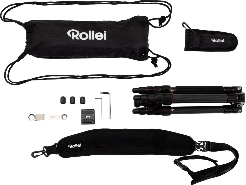 Odlehčený karbonový stativ od společnosti Rollei nabízí hlavu s rychloupínací destičkou. Základnou stativu jsou gumové nožičky, gumové koncovky nožek můžete sejmout a pro lepší stabilitu jej můžete zapíchnout do země. Nožičky stativu jsou výsuvné, ve složeném stavu mají délku 34 cm, v rozloženém 142 cm. Celková hmotnost činí 980 g a stativ unese až 8 kg! Tento kompaktní a robustní stativ ocení každý fotograf. Může být použit také jako monopod.
