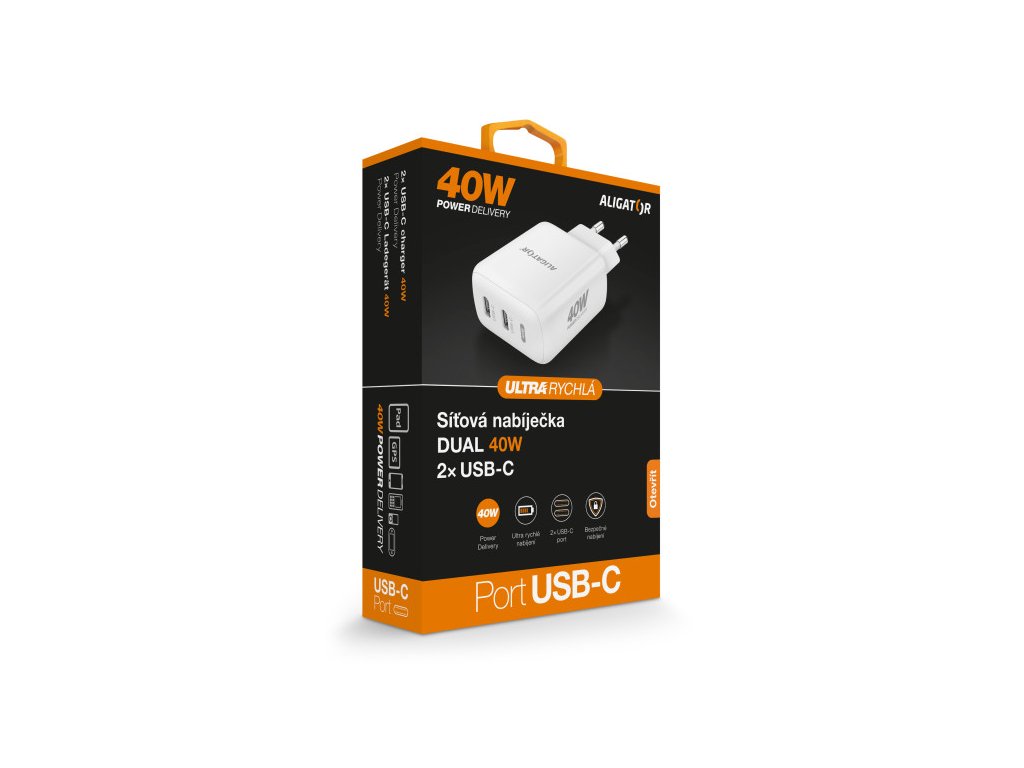 Chytrá síťová nabíječka ALIGATOR Power Delivery 40W, 2xUSB-C