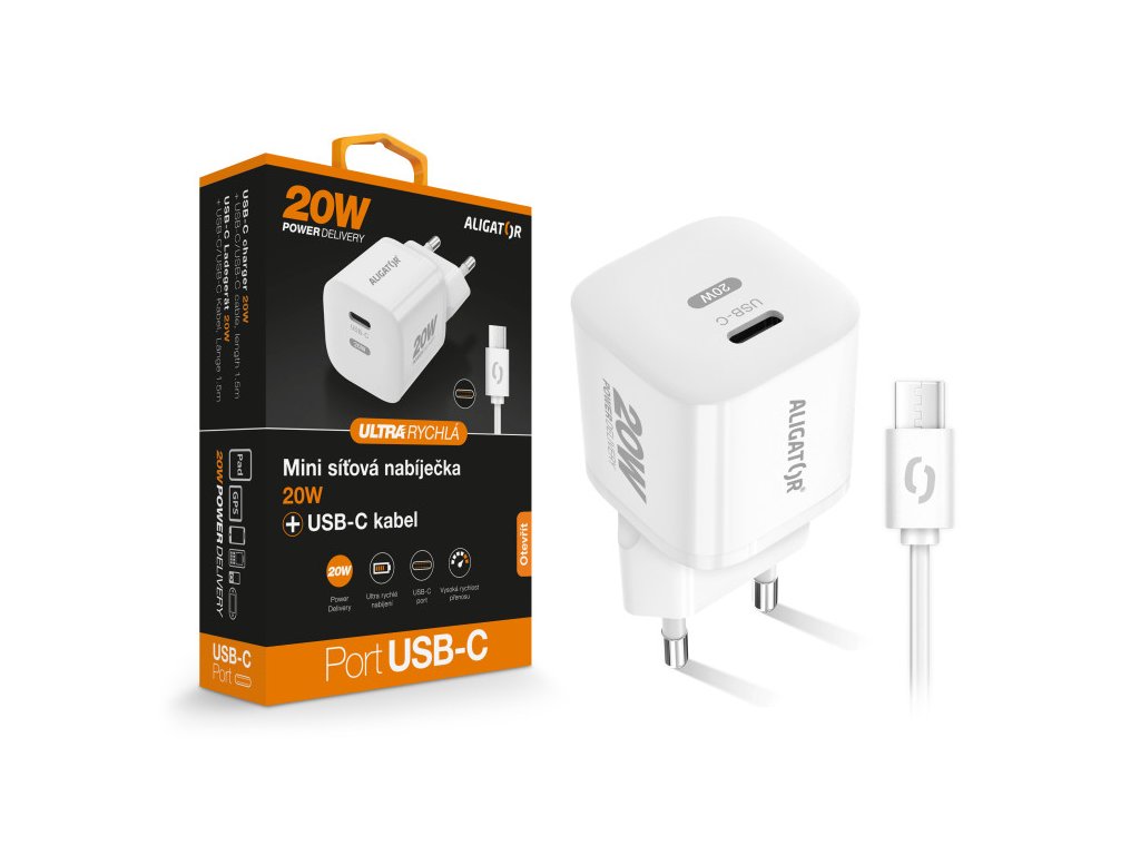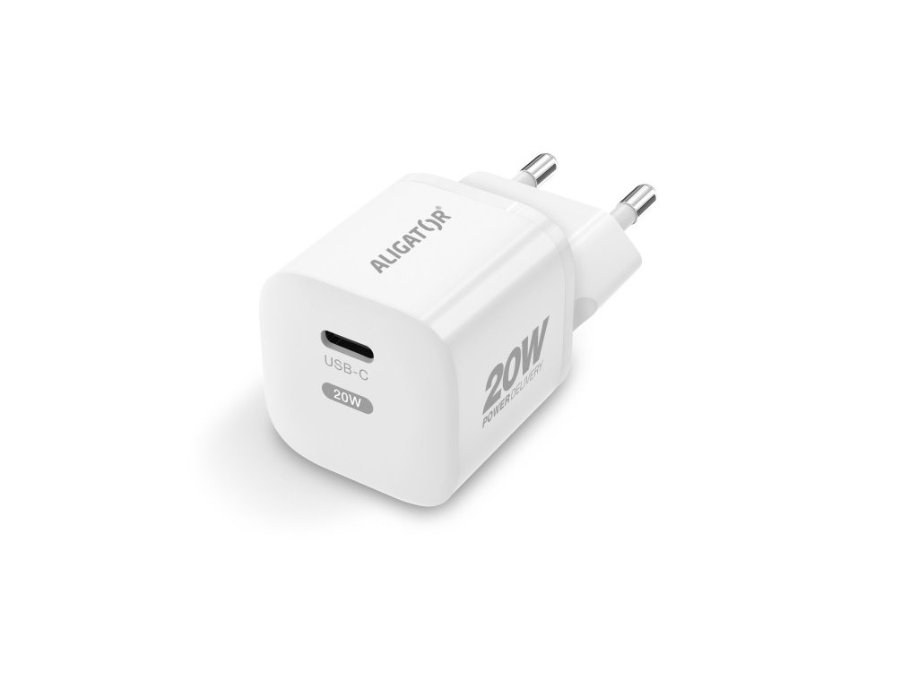 Rychlá nabíječka ALIGATOR Mini, PD 20W, USB-C/USB-C kabel, bílá