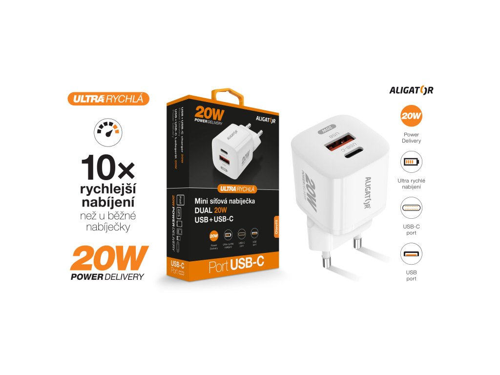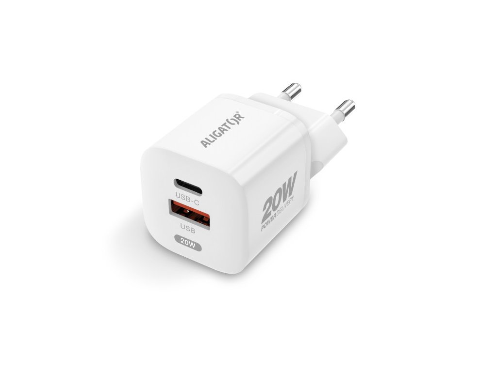 Rychlá mini síťová nabíječka USB-C + USB ALIGATOR Power Delivery 20W