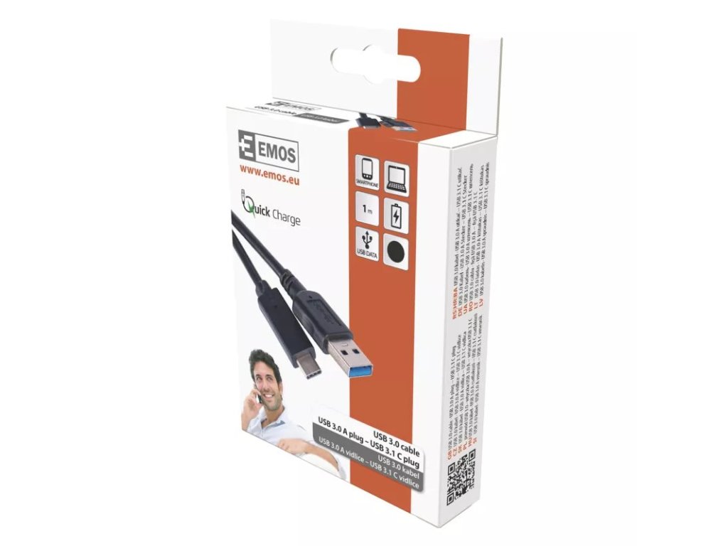 Rychlonabíjecí/datový kabel USB-A 3.0 / USB-C 3.1, Quick Charge, 1m, černý