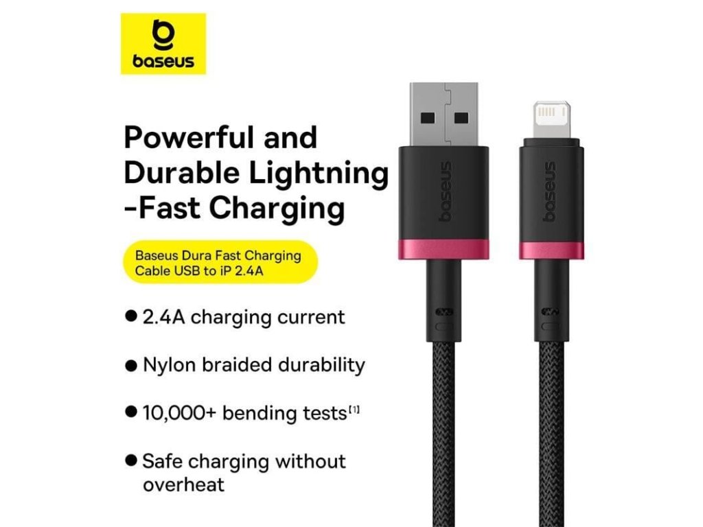 Kabel Baseus Dura USB/Lightning je ideální volbou pro každého, kdo hledá spolehlivé a rychlé nabíjení mobilních zařízení. Díky podpoře proudu 2,4 A umožňuje efektivní nabíjení bez zbytečných prodlev, což oceníte zejména při každodenním používání. Nylonový opletený povrch zajišťuje vysokou odolnost proti opotřebení a minimalizuje riziko poškození i při častém ohýbání a namáhání.