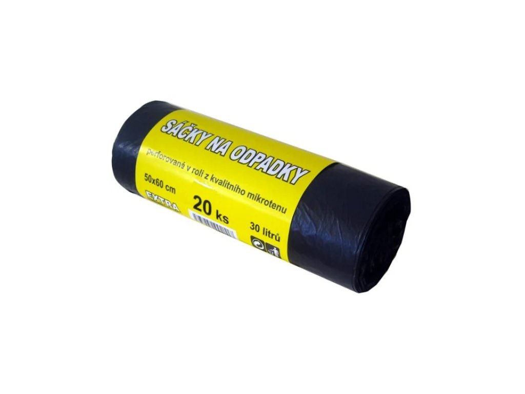 Sáček do koše na odpadky, velikost 50x60cm vyrobený z kvalitního mikrotenu. Objem 30L, role 20ks.