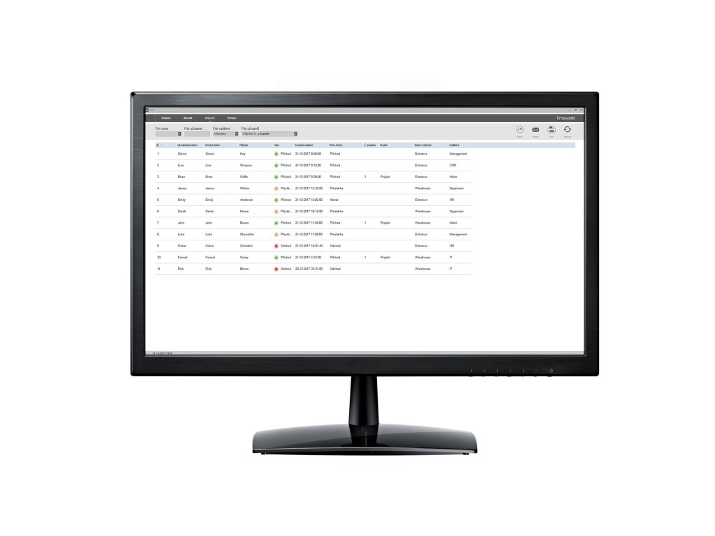 TimeMoto PC Plus obsahuje všechny funkce standardního časového registračního softwaru PC, který je dodáván s každým registračním terminálem TimeMoto. S programem PC Plus můžete také vytvořit aktuální seznam návštěv a můžete vytvářet denní, týdenní, měsíční nebo periodické přehledy pro jednotlivé oddělení a zaměstnance. Můžete také sledovat náklady, odpracované hodiny, přesčasy a absencí, sestavovat pracovní plány a stahovat data jako tabulku Excel, CSV, PDF nebo exportovat do mzdového balíčku. Výkonná databáze, funkce automatického zálohování a multi-terminální podpora dělají z PC Plus výkonný nástroj.