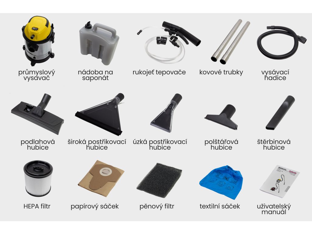 Salente Combo 4v1, vysavač pro mokré a suché vysávání, tepovač, fukar, nerez nádoba