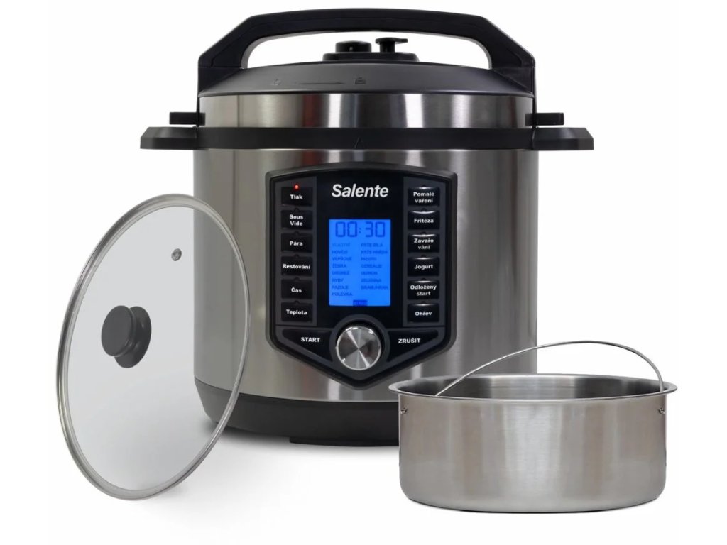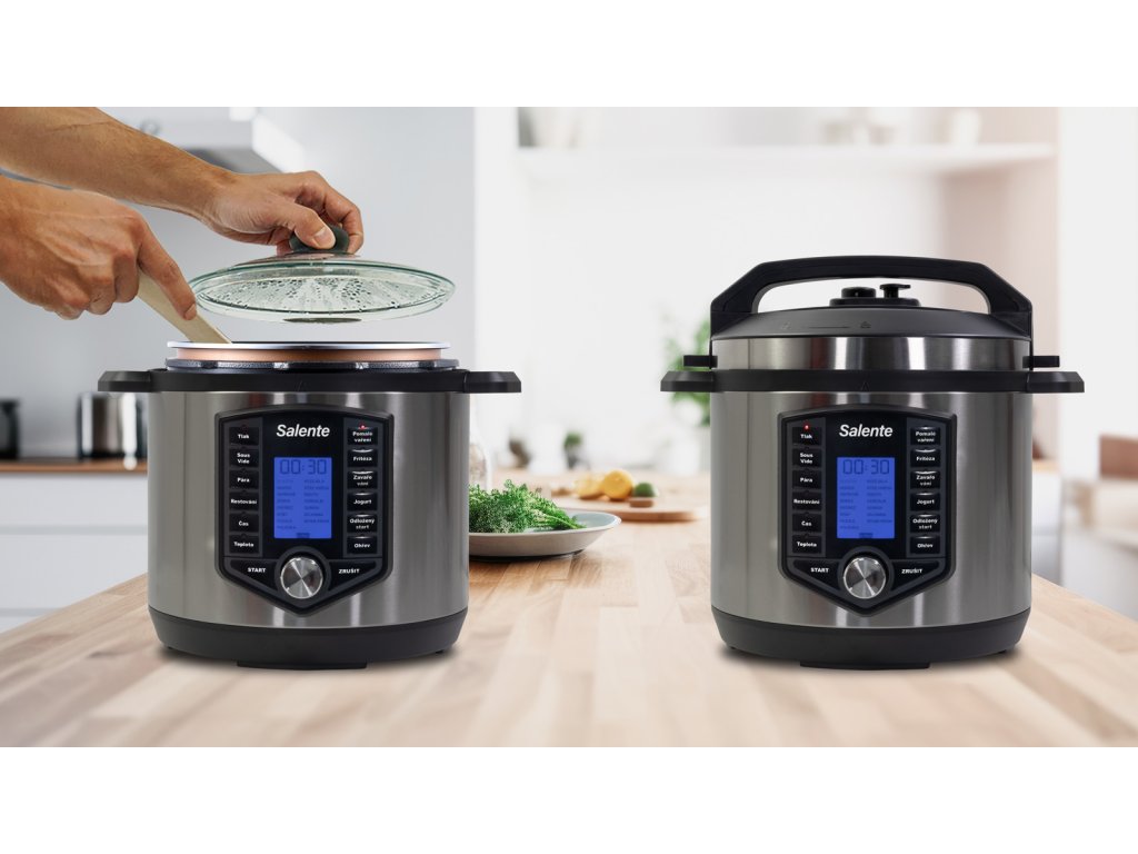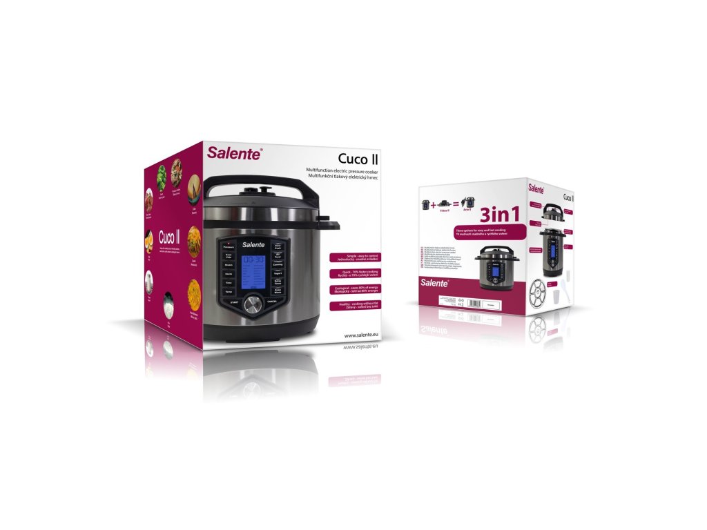 Salente Cuco II spojuje tři způsoby přípravy pokrmů v jednom moderním zařízení. Hrnec můžete použít jako tlakový, pomalý nebo pro restování. Režimy se liší podle použitých pokliček. V jednom hrnci si snadno a rychle připravíte vynikající guláš, zeleninu v páře nebo domácí poctivý vývar.