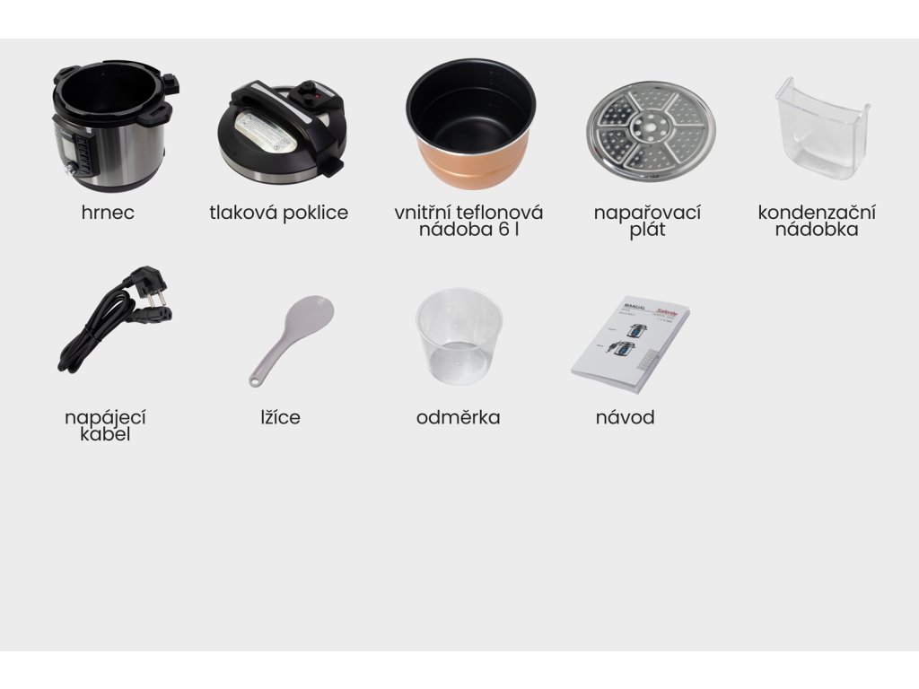 • Nádoba o objemu 6l - umožňuje vaření pro celou rodinu (2 - 6 osob), vhodná do myčky