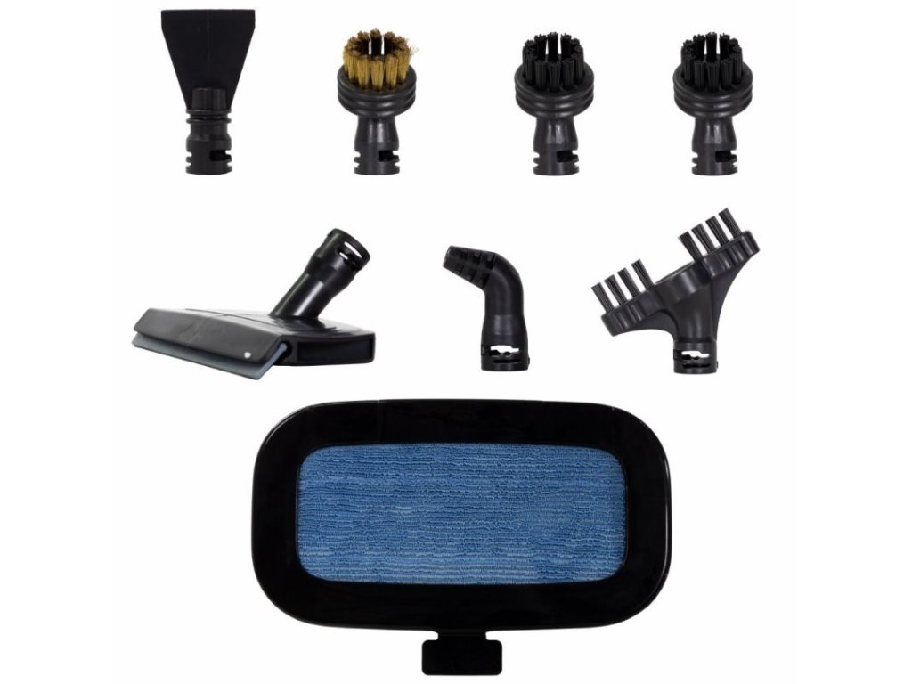 Součástí parního mopu je bohaté příslušenství na nejrůznější typy úklidu.