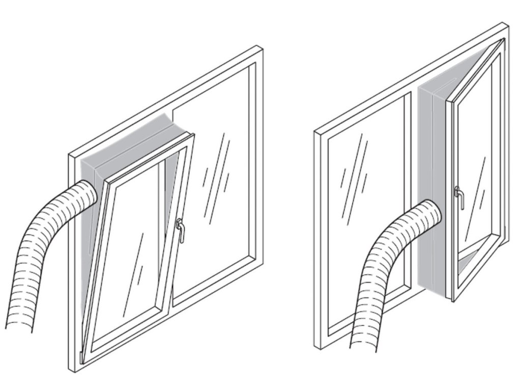 • Odvodu teplého vzduchu z místnosti přes dodávanou flexibilní hadici a těsnění do okna