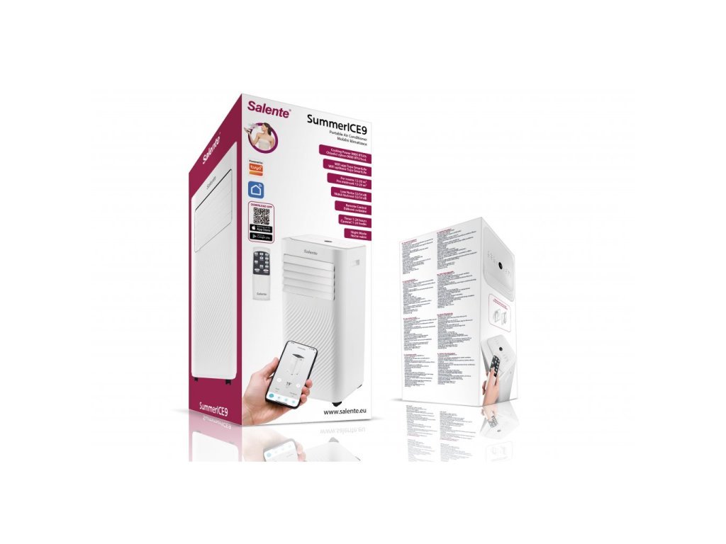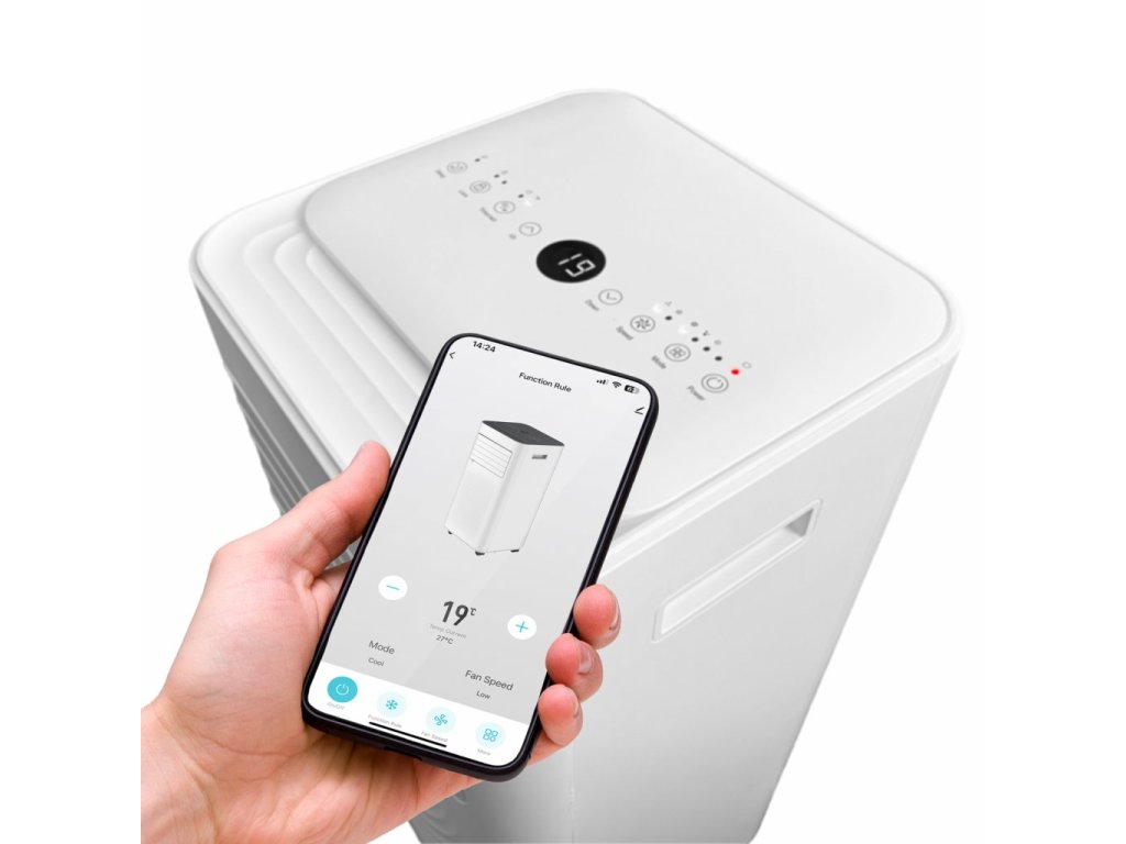 Chytrá mobilní klimatizace, chladící výkon 9000 BTU, WiFi+Bluetooth, dálkové ovládání, 3 režimy provozu (klimatizace, odvlhčovač, letní ventilátor)