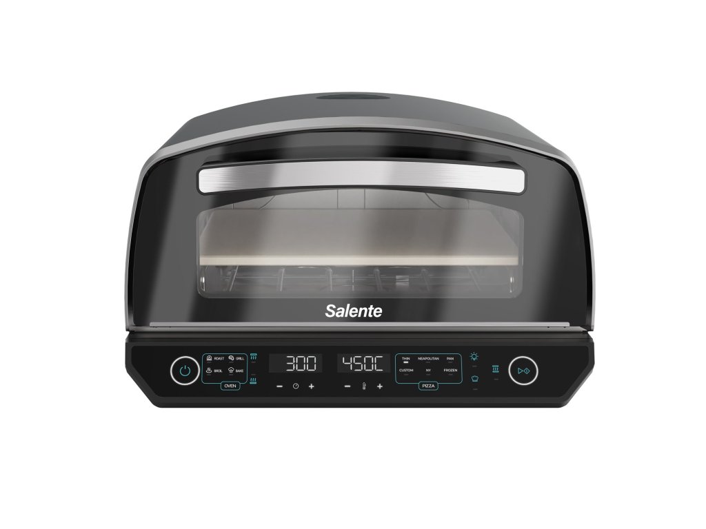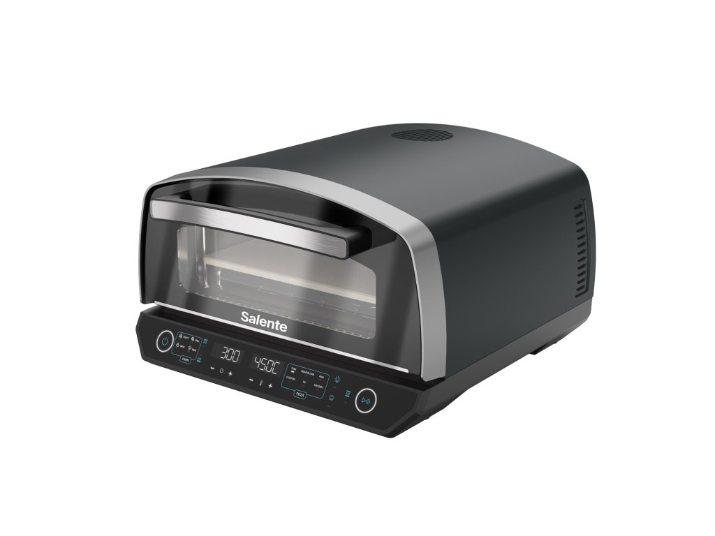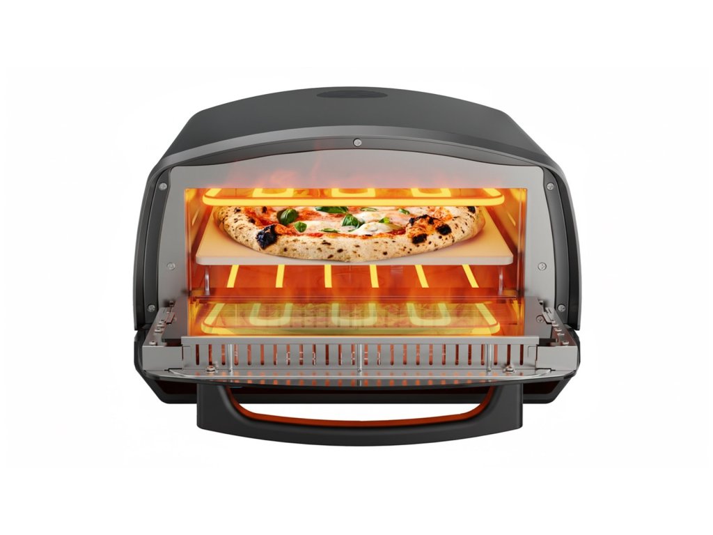 Pizza pec Salente Vulcano není jen mistr na pizzu – díky vestavěné funkci grilu ji využijete po celý rok na nespočet dalších způsobů. Nabízí režimy Broil, Roast, Bake a Grill, takže si snadno připravíte nejen dokonale propečenou pizzu, ale i šťavnaté maso, dozlatova zapečenou zeleninu, křupavé toasty nebo domácí pečivo.