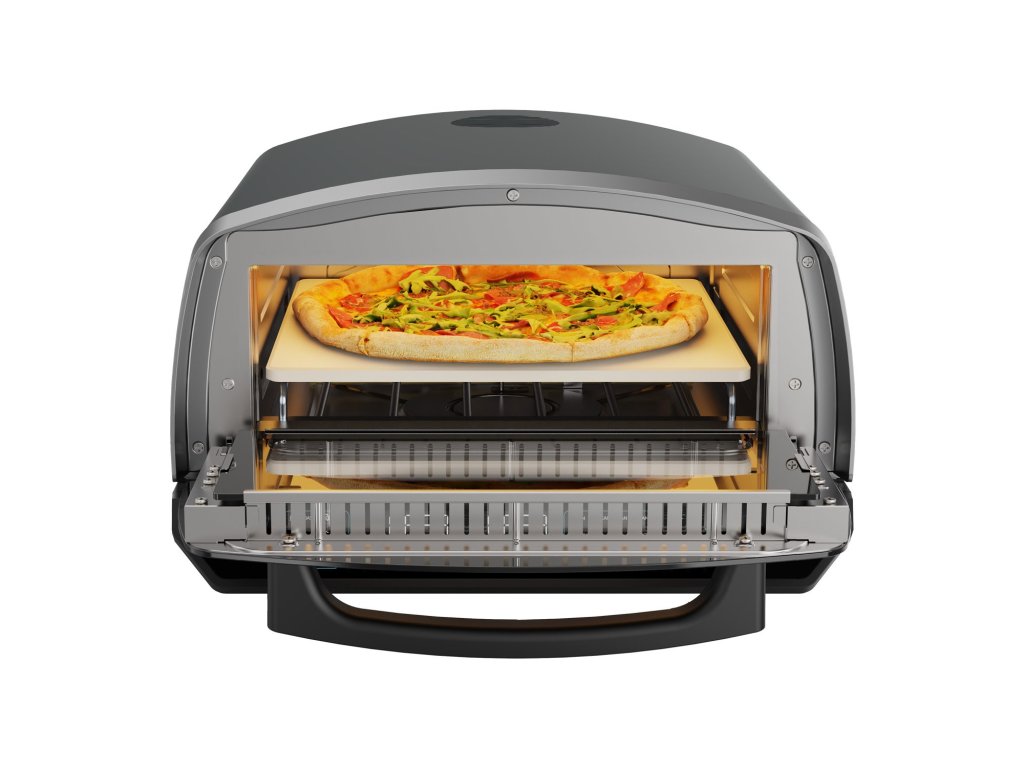 Elektrická pizza pec, teplota 80 - 450 °C, funkce grilu, 5 přednastavených pizza programů a 5 na pečení/grilování, 1 vlastní program, dotykový panel, časovač