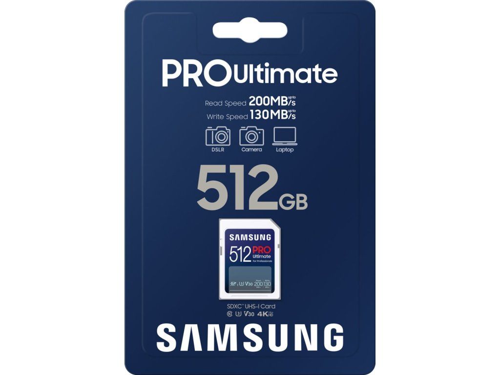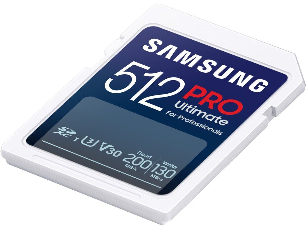 Paměťová karta SDXC, kapacita 512GB, čtení až 200MB/s, zápis až 130MB/s, rozhraní UHS-I, rychlostní třída U30/V30, vhodná pro zrcadlové/bezzrcadlé/kompaktní fotoaparáty, kamery, laptopy a drony.
