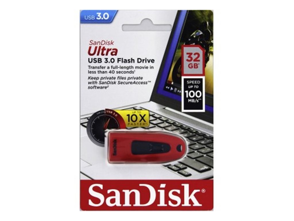 SanDisk Ultra USB 3.0 Flash Drive kombinuje rychlejší přenos dat a velkorysou kapacitu v kompaktním, stylovém balení.