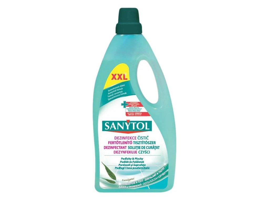 Udržujte svůj domov čistý s Dezinfekčním čističem na podlahy a plochy SANYTOL! Bez námahy odstraňuje špínu a do hloubky dezinfikuje.