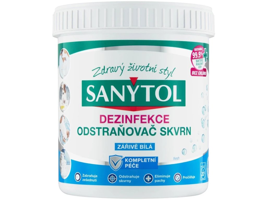 SANYTOL, odborník na dezinfekci bez chlóru, vyvinul Dezinfekční odstraňovač skvrn s kompletní péčí, který ničí mikroby, nepříjemný zápach a odolné skvrny od 30 °C. Jeho složení obohacené o enzymy proniká dovnitř textilního vlákna a uvolňuje odstraňovače skvrn pro dokonalý výsledek.