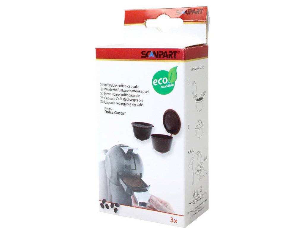 Opakovaně plnitelná kapsle na kávu do kávovarů DolceGusto šetří nejen vaši peněženku, ale také životní prostředí. Navíc si můžete vybrat kávu, jakou máte rádi či kterou máte zrovna doma. Takže i když vám dojdou kapsle, o voňavou kávu z vašeho oblíbeného kávovaru nepřijdete ani vy, ani případná návštěva. Opakovaně plnitelnou kapsli Scanpart lze mýt v myčce na nádobí a v balení obdržíte hned 3 kusy.