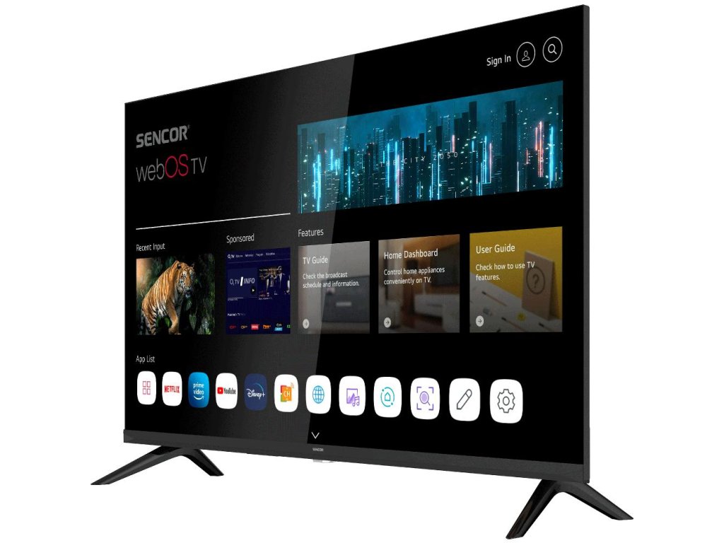 LED SMART televize • 32" (80cm) • webOS • HD Ready (1366 x 768 px) • HDR10 • D-LED • DVB-T2/C/S2 • H.265/HEVC • Dolby Digital Plus • výstupní výkon 2 × 8 W • HDMI • USB • CI+ • HBO MAX • Disney+ • Netflix