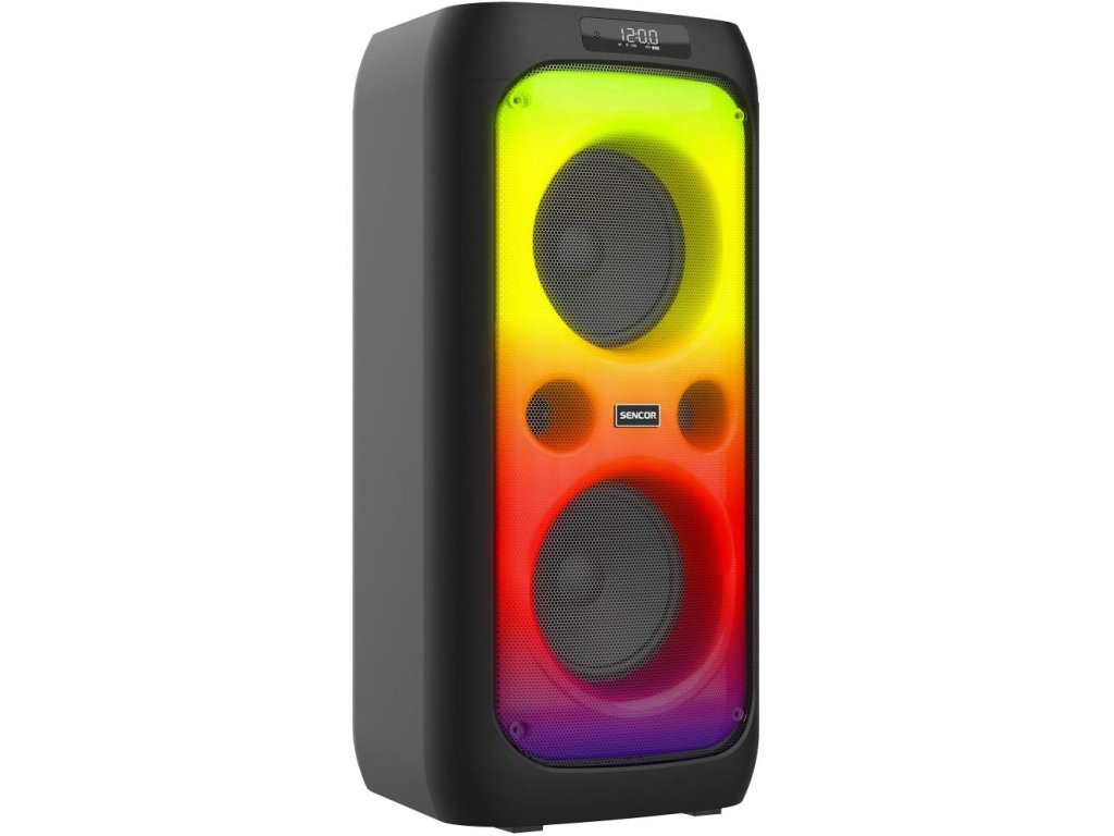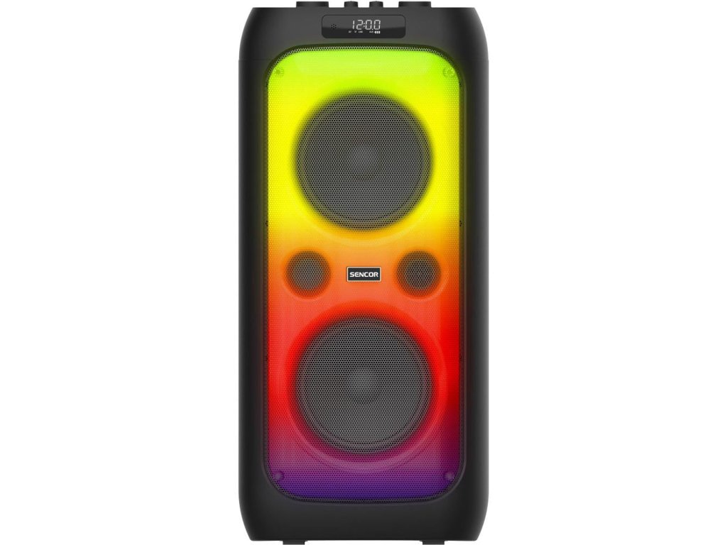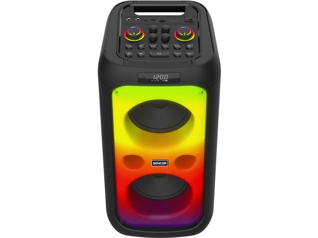 partybox reproduktor • výkon 100 W • bezdrátový mikrofon v balení • TWS • přední LED barevný panel s efekty • ekvalizér pro zvýraznění basů • doba přehrávání až 7 hodin • dosah až 10 m