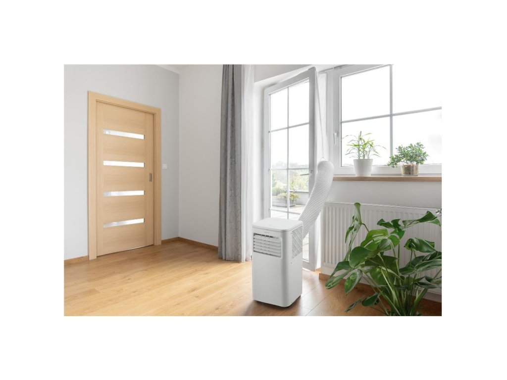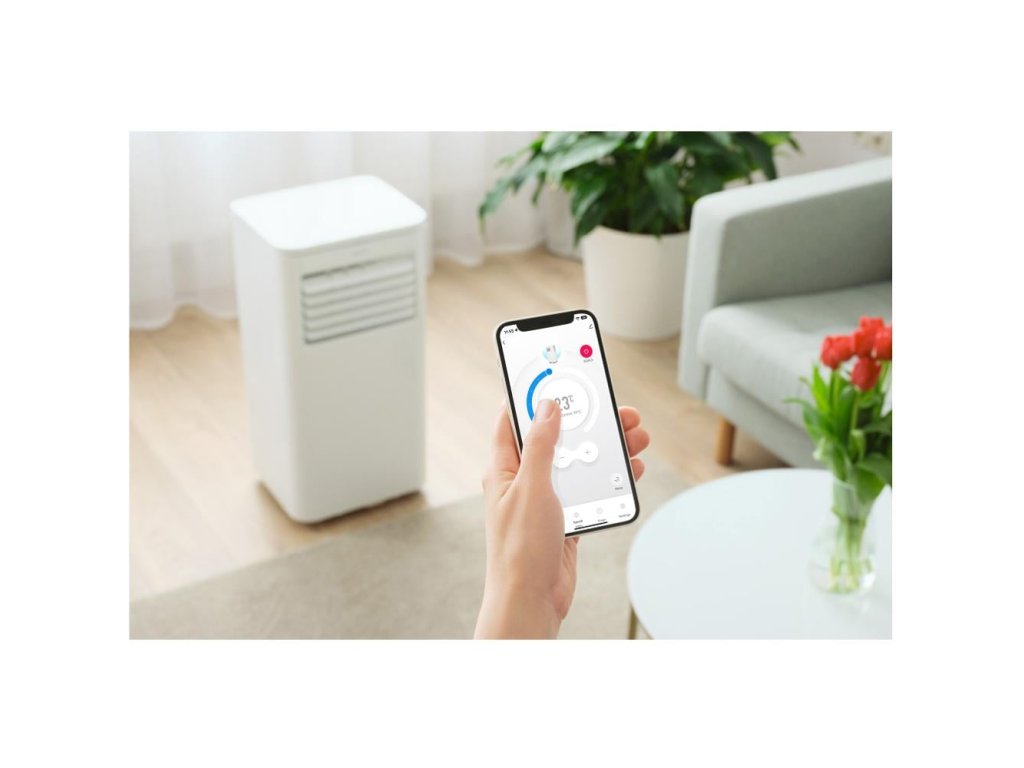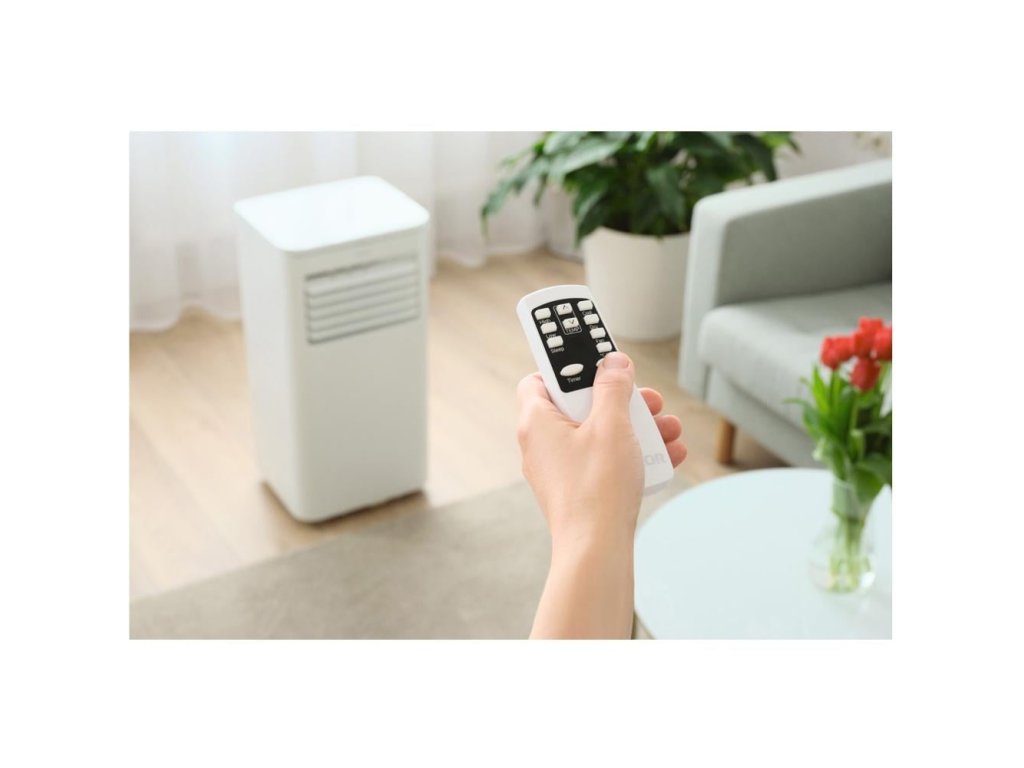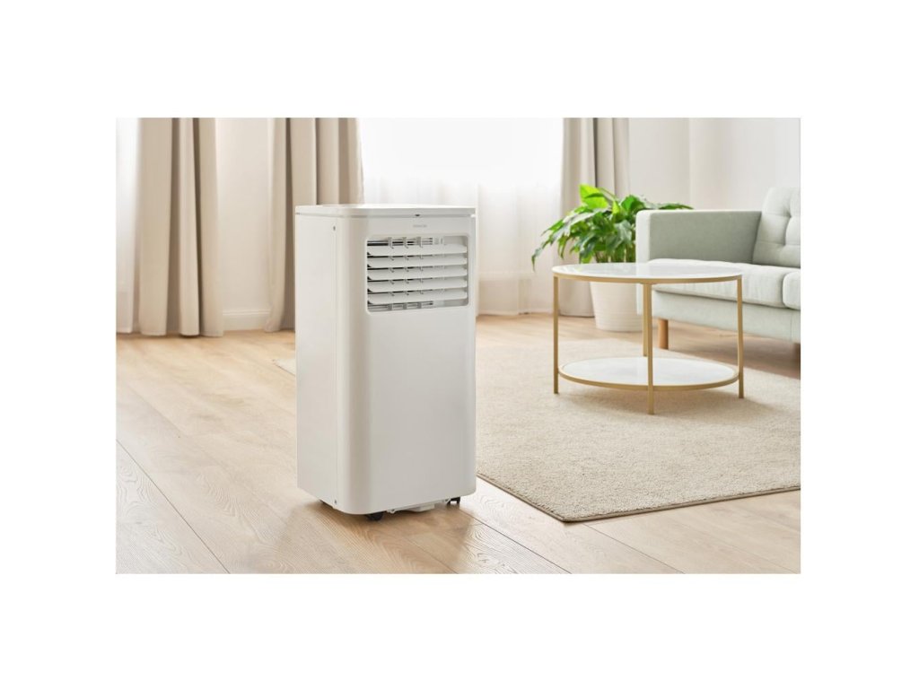 mobilní klimatizace • energetická třída A • chladicí výkon 7000 BTU/h • pro místnost do 67 m3 • hlučnost 53 dB • odvlhčování • ventilátor • pojezdová kolečka • noční režim • chlazení • wifi • 24h časovač • dálkové ovládání • omyvatelný filtr