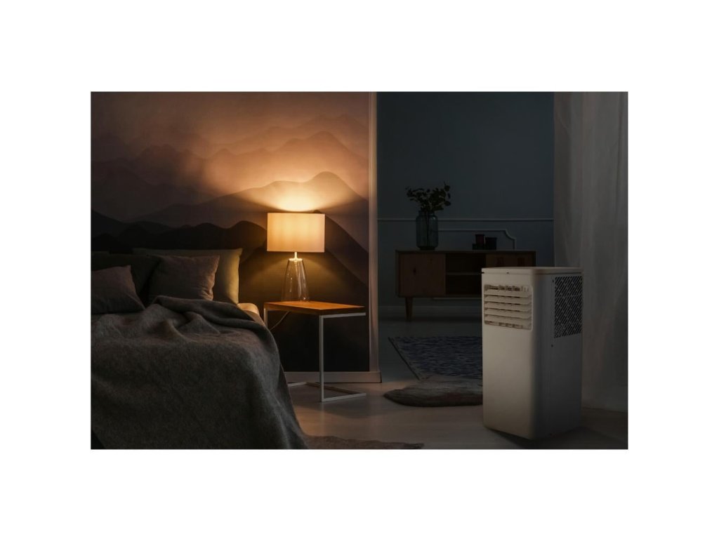 V režimu chlazení vytvoří tahle mobilní klimatizace v místnosti příjemnou teplotu nastavitelnou v rozsahu od 17 do 30 °C. S režimem odvlhčování zajistí lehký a svěží vzduch. Režim ventilace je vhodný, pokud není venku až takové horko. Rychlost ventilátoru můžete nastavit na jemné ofukování, nebo silný výkon. Chod je tichý. Maximální úroveň akustického tlaku je pouhých 64 dB(A). Hodnota akustického výkonu ve vysokém režimu je 53 a v nízkémm režimu pouhých 50 dB(A).
